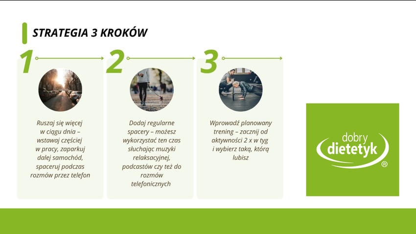 1️⃣ Ruszaj się więcej w ciągu dnia, wstawaj częściej, wybieraj schody, zaparkuj trochę dalej