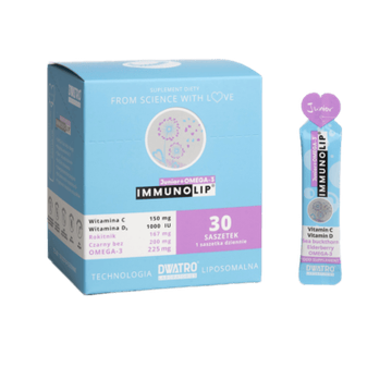 Wysoko przyswajalny unikalny kompleks witamin C, D i w połączeniu z ekstraktem z bzu czarnego oraz wegańskimi kwasami omega-3 z oleju z mikrolag i rokitnika w technologii liposomalnej.